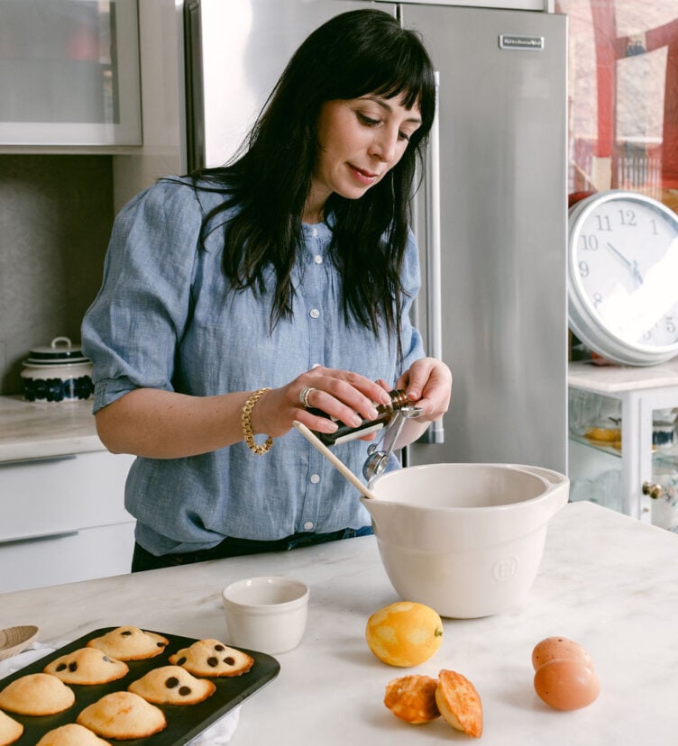 To go with the French theme, I love baking madeleines and will find any excuse to make them. I use this recipe from La Cuisine. Keep an eye on the oven temperature as mine runs hot, and I need to reduce the start temperature by 50 degrees, or they will burn. I keep my pan greased and floured in the freezer for a cold shock once it enters the oven. You can always play around with the basic recipe once you get the hang of it. My twist on the madeleines is always adding a little vanilla bean or lemon zest to the batter. Fresh fruit such as blueberries, raspberries, or chocolate chips are fun too!