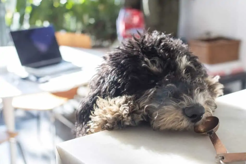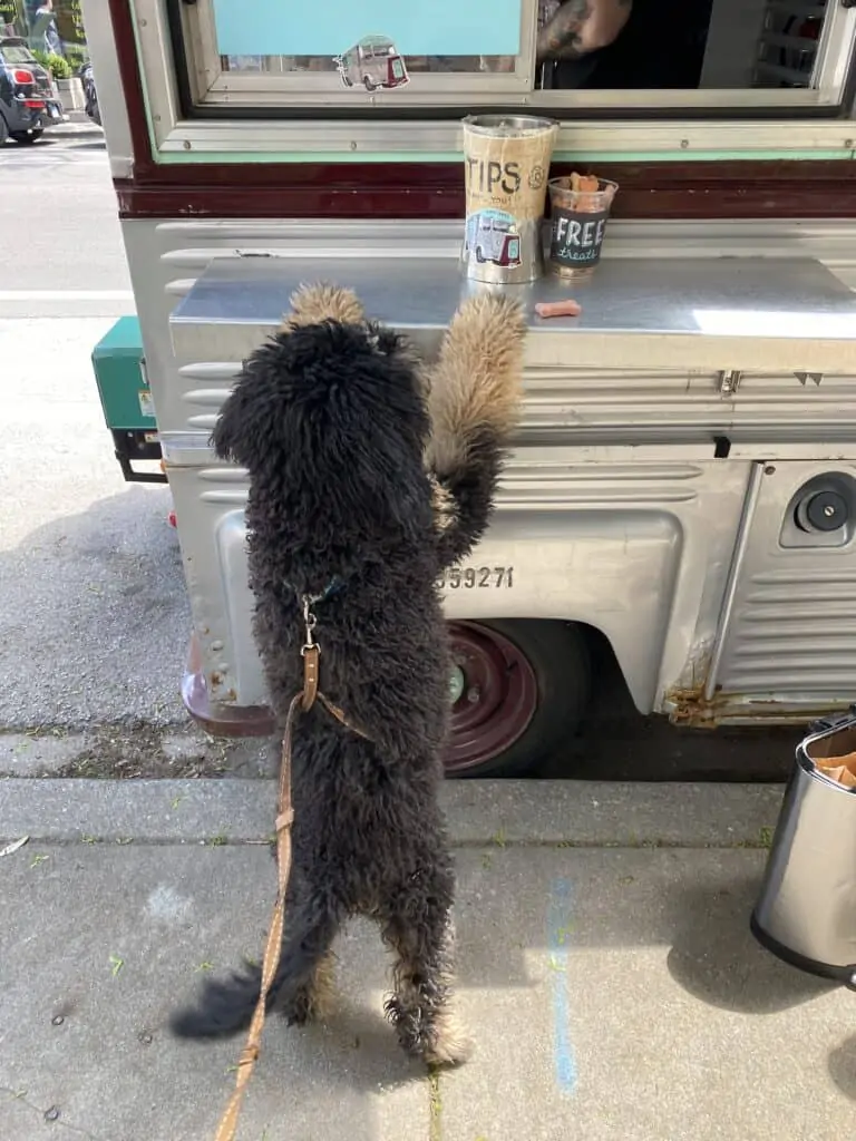 His new skill lately is counter surfing. He is tall enough to reach the kitchen counter and is always trying to jump up for chicken or cheese.