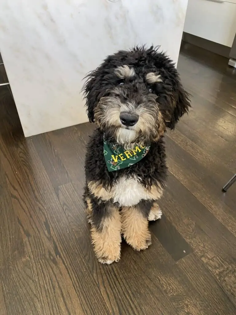 He is so cute! I noticed his University of Vermont bandana. My niece is a student there and loves it! Vermont is a truly beautiful state!