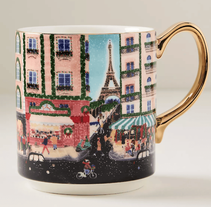 The iconic Anthropologie Paris mug. They put out a new design each year. I add to my collection and look forward to using this each morning November and December.