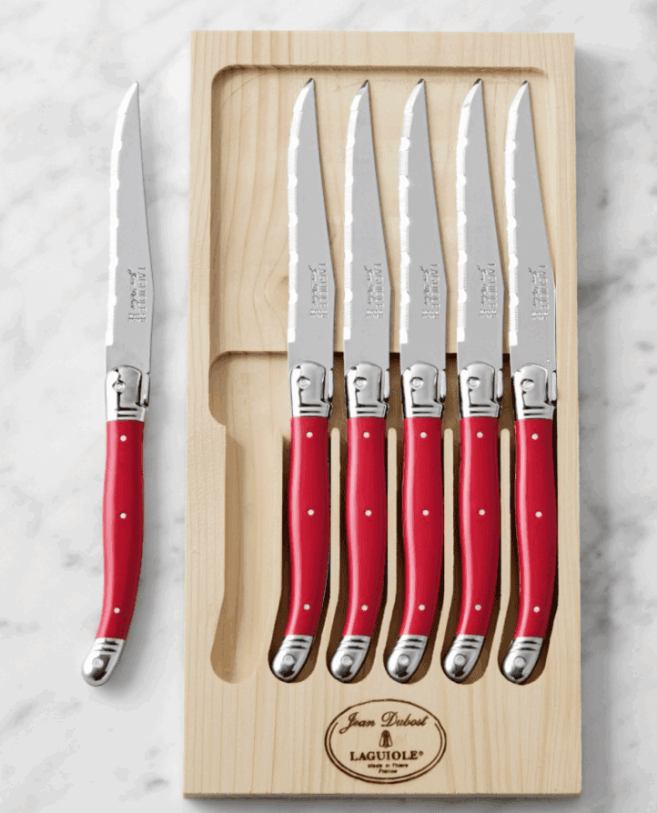 Laguiole French steak knives. We have had these in our kitchen for years and use them regularly. Perfect for anyone who wants to Frenchify their kitchen.