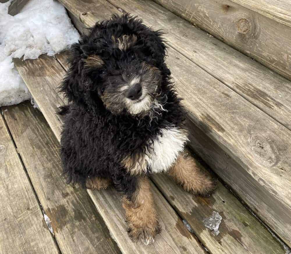 Today officially marks three weeks with Henri! He is growing so fast. I love him tiny and I wish he would stay this way for long. He had his checkup with the vet this past week and he came in at 11.2 pounds. She is guessing he will be full-grown at around 30 pounds. He is a mini Bernedoodle. His mom was 50 pounds and his dad was 20 pounds.