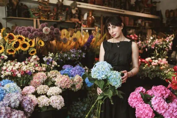 What brand is the darling black bag you are wearing with the black Merlette dress while holding hydrangeas:)?