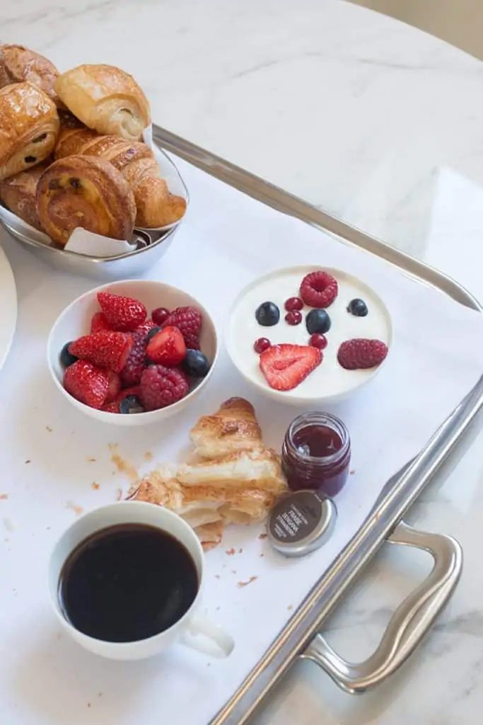 Breakfast was worth splurging on and is not always something I recommend. You can enjoy breakfast in the hotel restaurant or up in your room. I tried both options and enjoyed breakfast on the balcony with a view of Paris.
