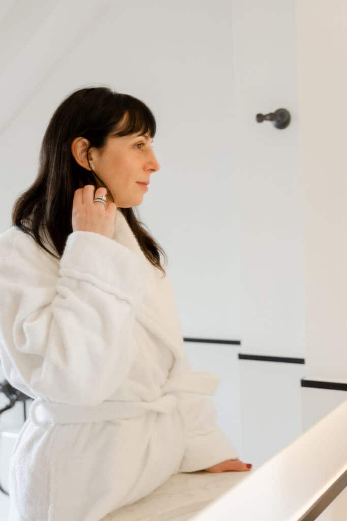 I purchased the Roz leave-in conditioner on a whim last summer after seeing it on the Credo site. It’s perfect for warmer days when I want to air-dry my hair, as it adds a little extra moisture and a slight curl. Amanda, who does my hair, recommended the shampoo and conditioner, so I am now fully obsessed with the entire Roz line.
