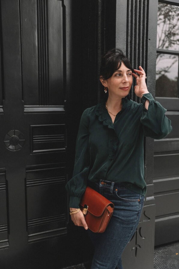 My go-to shirts are button-downs and blouses, which work with pants and skirts. To complete the look, throw on a leather jacket or trench coat.