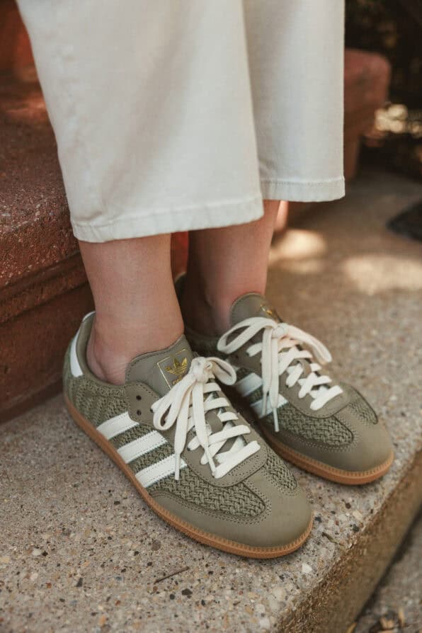 Comfortable walking shoes are essential when discovering Paris. You never want to get a blister or have sore feet on vacation. Paris is best explored on foot. I highly recommend flats instead of heels. The cobblestones aren’t so easy to navigate in heels. For sneakers, I love Veja, Samba, or New Balance. To prevent blisters, I swear by Moleskin inside of your shoes. You can buy it on Amazon or at your local drugstore. For flats, my go-to is the Margaux Demi. (wearing below)