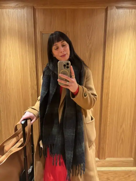 For December, a travel cashmere scarf is ideal. This one from White and Warren or Me+Em is a favorite. You won’t regret this extra layer for warmth, and you can use it under your coat as you are out and about in Paris, too.